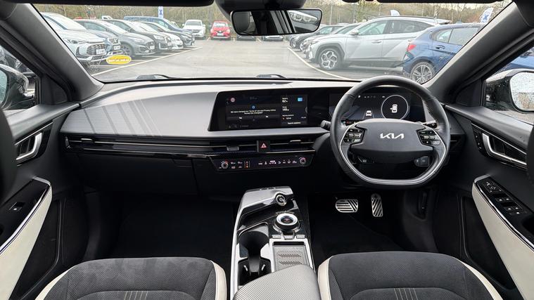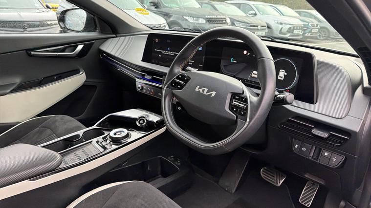 Features Include Adaptive Cruise, LaneKeeping Assist, Blind Spot Monitoring With Surround View Camera, Rear Cross Traffic Alert And Autonomous Emergency Braking. Striking, powerful, and technologically advanced, this 2022 Kia EV6 236kW GT-Line AWD finished in stunning Moonstone Matt represents the next generation of electric performance SUVs. With bold design, exhilarating acceleration, and a premium interior, the EV6 GT-Line delivers a truly modern driving experience. Powered by a dual-motor all-wheel-drive system producing 236kW, paired with a 77.4kWh battery, this EV6 offers instant torque, confident grip, and rapid acceleration, all with zero emissions. Thanks to Kia's advanced 800-volt charging architecture, rapid charging allows you to add significant range in minimal time, making long journeys effortless. Inside, the GT-Line specification provides a sporty yet luxurious cabin. Features include vegan leather and suede-style sports seats, heated and ventilated front seats, heated rear seats, and a stunning curved dual-screen display combining digital instrumentation and touchscreen infotainment. Satellite navigation, Apple CarPlay + Android Auto, and a premium sound system ensure seamless connectivity and entertainment.