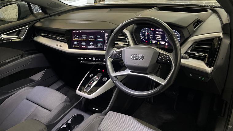 A stylish Audi Q4 e-Tron Sport packed with great features. Elevate your driving experience with the Audi Q4 e-Tron 125kW 35 55.52kWh Sport 5dr Auto. Where innovation meets elegance, the Q4 e-Tron boasts Adaptive Cruise Control, seamlessly adapting to your journey. The Heads Up Display keeps you informed, while Heated Seats and Dual Zone Climate Control ensure unparalleled comfort. Navigate with precision using the advanced Navigation system, and park effortlessly with Rear Parking Sensors. Power Folding Door Mirrors add convenience to every drive. Designed to exceed expectations, this electric marvel is the embodiment of Audi's pursuit of perfection. Experience the road like never before with the Audi Q4 e-Tron.