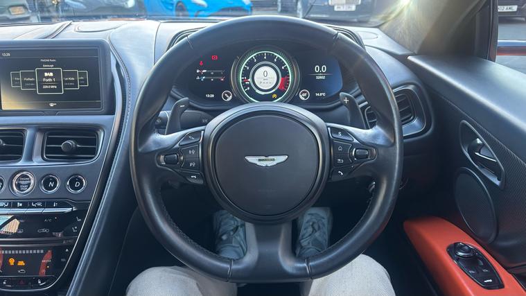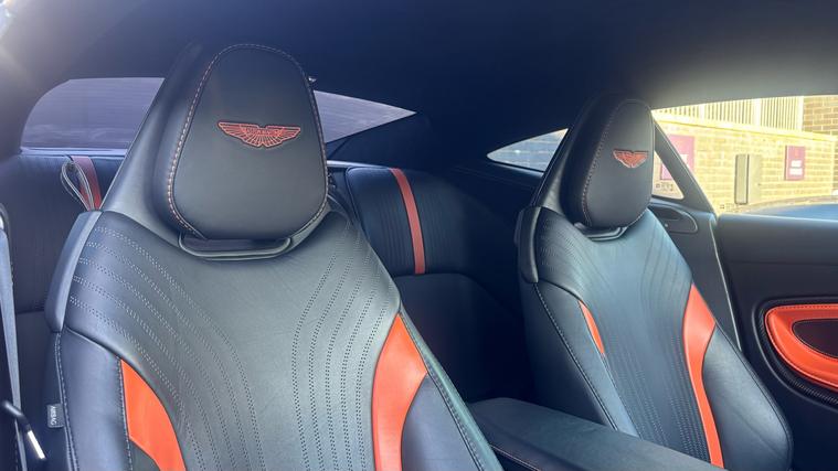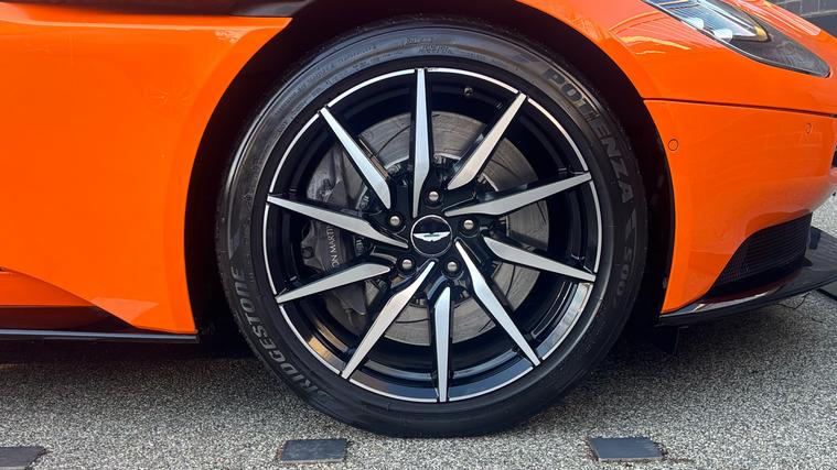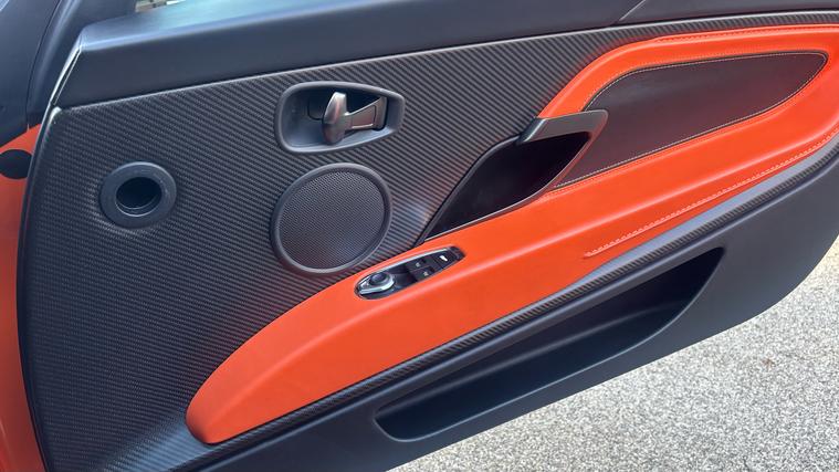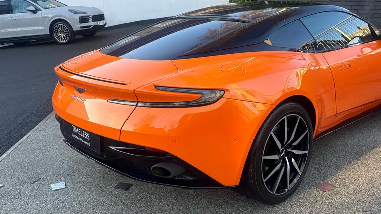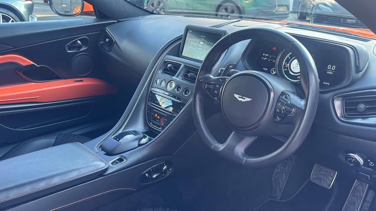 Q Special Cayucos Orange Paint and over 29K of Optional Extras including Full Exterior Black Pack. Full Aston Martin Service History and 12 Months Aston Martin Warranty. Head turning Q Special Cayucos Orange DB11 4.0 V8 Coupe with a contrasting Onyx Black and Californian Poppy Interior trim and fitted with over 29K of Optional Extras. These include Full Exterior Black Pack, 20inch Gloss Black Diamond Turned Alloy Wheels, Satin Carbon Fibre Trim Inlay, Smoked Tail Lights, Interior Technology Pack, Satin Dark Chrome Interior Jewellery Pack, Gloss Black Roof, Duotone Leather, Alcantara Headlining, Contrast Stitching And Welt, Ventilated Seats, Q Machined Carbon Fibre Aston Martin Wings and Script and much more. Full Aston Martin Service History and 12 Months Aston Martin Premium Warranty.