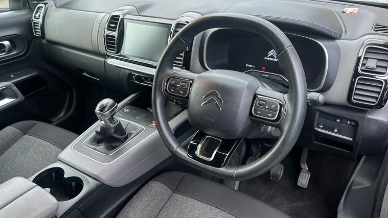 A well-equipped C5 with smart tech and great comfort. A solid, comfortable choice for everyday driving. The 2021 Citron C5 1.2 PureTech 130 Sense 5-door blends comfort, technology and practicality in a refined family hatch. Inside, it features a touchscreen infotainment system with built-in navigation, Apple CarPlay + Android Auto, Bluetooth and USB connectivity, as well as dual-zone automatic climate control and quality upholstery for a comfortable cabin feel. Convenience is enhanced by keyless entry and start, front and rear parking sensors with reversing camera, electric folding mirrors and plenty of interior storage. On the outside, LED daytime running lights, stylish alloy wheels and body-colour trim give it a modern, upscale look. With its practical five-door layout and generous boot space, this C5 is ideal for daily commutes and family journeys alike.