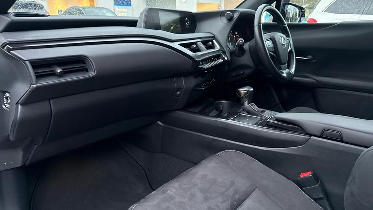 This Lexus UX 250h 2.0 Auto looks fantsatic in White. Our 2021 model comes with Adaptive Cruise Control, Rear View Camera, CarPlay and Heated Steering Wheel! Book an appointment today!. Discover the stunning Lexus UX 250h 2.0 Auto! This Petrol Hybrid is a fantastic compact SUV, perfect for families. Driving is a breeze with Adaptive Cruise Control and Lane Assist. This model is equipped with Apple CarPlay, enabling the use of popular apps such as Google Maps and Spotify. Park with confidence thanks to the Rear View Camera and Front and Rear Sensors. Convenience is key with High Beam Assist, Heated Door Mirrors and Privacy Glass. Protect the premium Cloth Upholstery with GARDX - the stain guard with a lifetime guarantee. Revel in comfort with the Premium Pack, featuring Heated Seats and Heated Steering Wheel. Call now to arrange a test drive in the lovely Lexus UX!.
