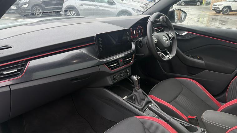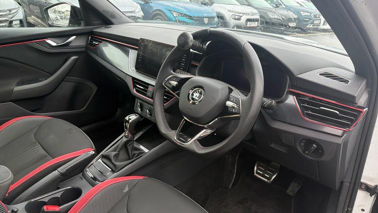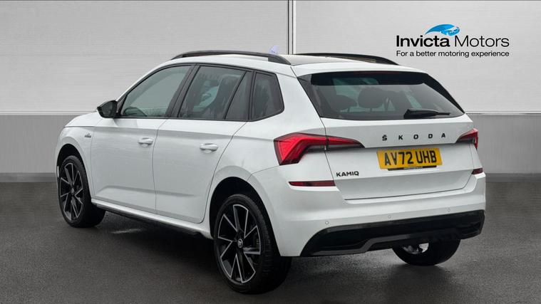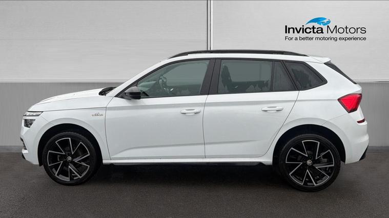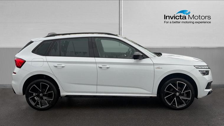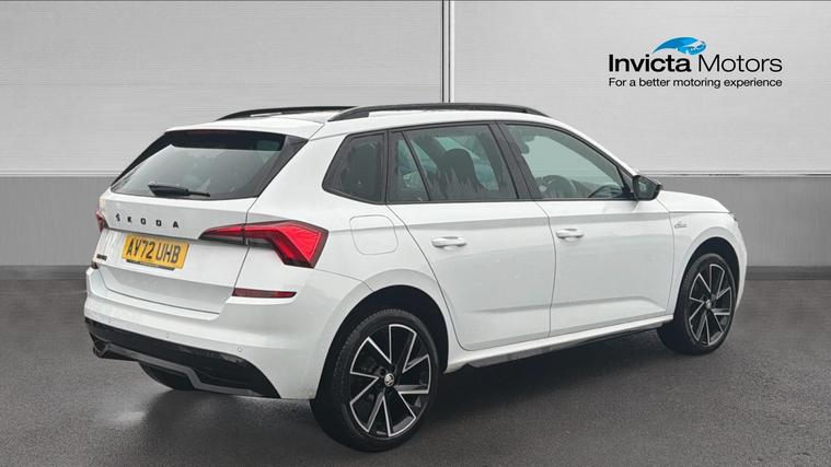 Features Include Apple CarPlay And Android Auto, Rear Parking Sensors, Digital Cockpit, Monte Carlo Styling And Climate Control. Sporty styling meets everyday practicality in this 2022 Skoda Kamiq 1.0 TSI 110 Monte Carlo DSG, finished in the sleek and sophisticated Moon Stone Metallic. Compact yet spacious, the Kamiq is perfectly suited to city driving while remaining comfortable and capable on longer journeys. Under the bonnet is a lively and efficient 1.0-litre TSI petrol engine producing 110PS, paired with a smooth and responsive DSG automatic gearbox, delivering an enjoyable drive with excellent fuel economy. The Monte Carlo specification gives this Kamiq a distinctive, sporty edge with gloss black exterior detailing, unique alloy wheels, sports seats, and a black headlining, creating a premium and dynamic feel both inside and out. Inside, the cabin is modern and well-equipped, featuring a digital driver display, touchscreen infotainment system, Apple CarPlay and Android Auto, Bluetooth connectivity, climate control, and a leather-trimmed multifunction steering wheel. The elevated driving position offers great visibility, while the flexible interior and generous boot space make it ideal for everyday use.