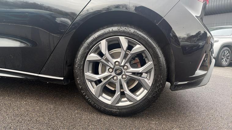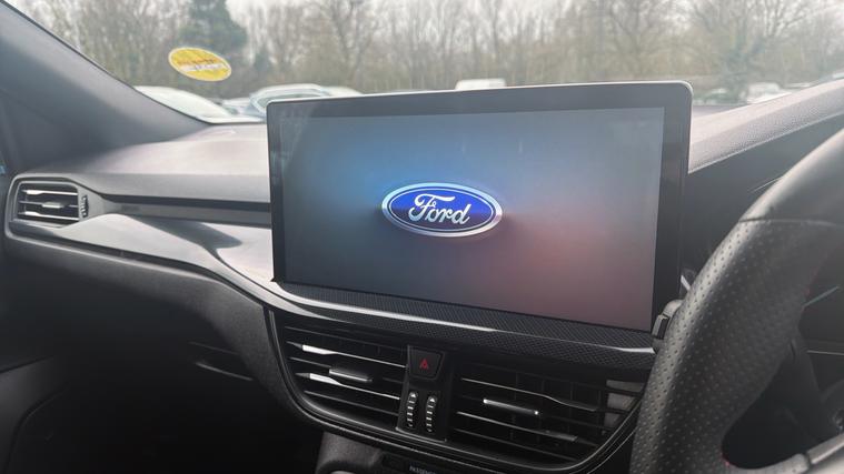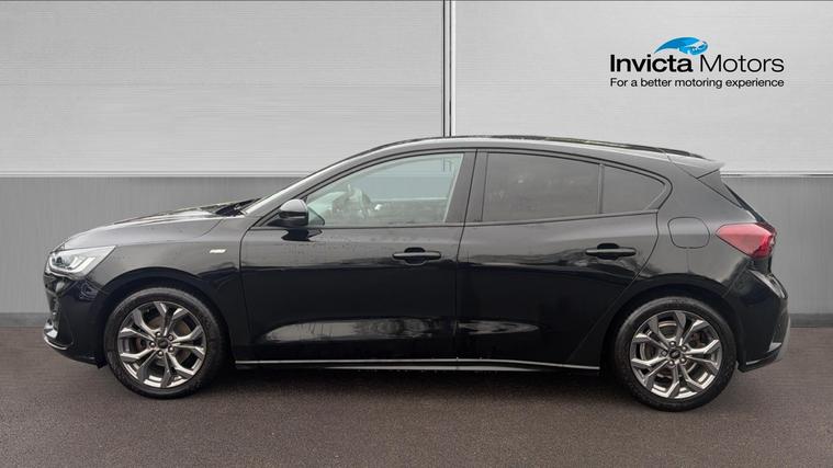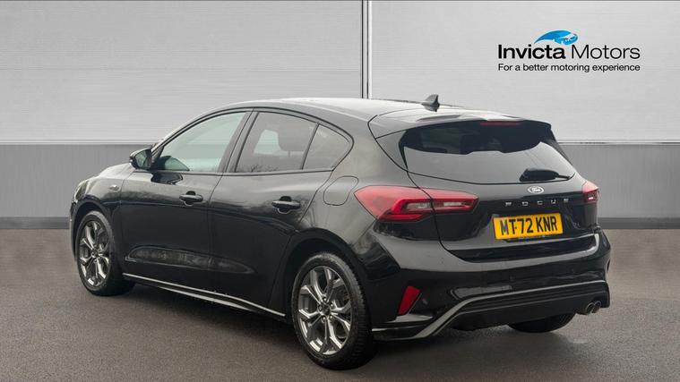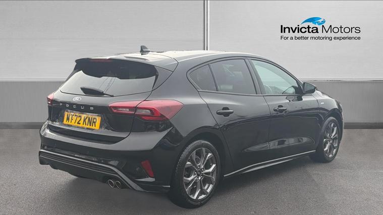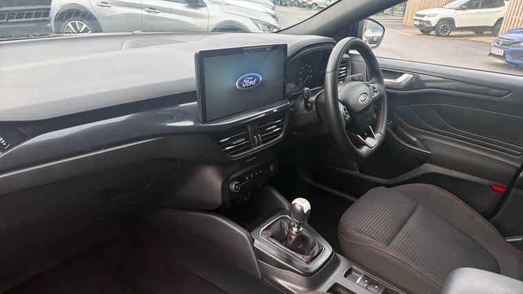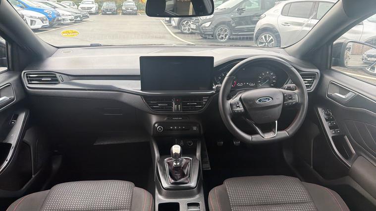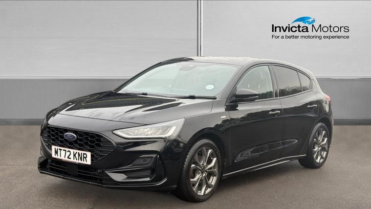 Features Include Apple CarPlay AndAndroid Auto, Rear Parking Sensors, Dual Zone Climate Control, Lane Keep Assist And Hill Start Assist. Sporty, stylish, and packed with technology, this 2022 Ford Focus 1.0 ST-Line finished in sleek Agate Black delivers a perfect blend of performance, efficiency, and everyday practicality. The ST-Line model adds a dynamic edge with sporty styling cues both inside and out, making it stand out on the road. Powered by Ford's efficient yet responsive 1.0-litre EcoBoost petrol engine, the Focus ST-Line offers smooth acceleration, excellent fuel economy, and a fun-to-drive experience whether in town or on the motorway. Its precise handling and sharp steering make it a standout in the compact hatchback segment. Inside, the cabin is modern and driver-focused, featuring a touchscreen infotainment system with navigation, Apple CarPlay + Android Auto, Bluetooth connectivity, and a premium ST-Line interior with sports seats. Dual-zone climate control, keyless entry, and a multifunction steering wheel enhance comfort and convenience for every journey.