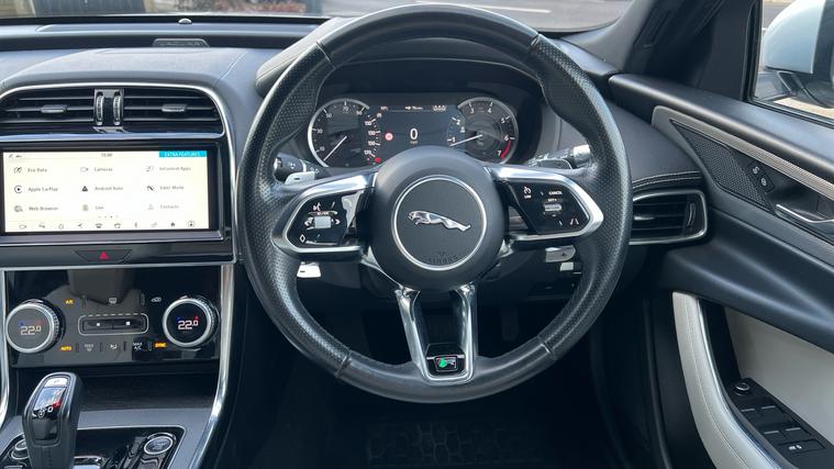 Rare model AWD petrol XE, offered in a desirable colour combination. Finished in Rhodium Silver Metallic with Light Oyster Leather Seats. Features include Satellite Navigation System, Parking Sensors, 2 Zone Climate Control, Leather Trim, 18 inch Style 5029 Alloy Wheels, All Surface Progress Control (ASPC), Animated Directional Indicators, Auto High Beam Assist (AHBA), All Wheel Drive System, Cruise Control, DAB Radio, LED Premium Headlamps, Navigation System, Rear Camera, Paddle Shifters, Auto-dimming interior rear view mirror, Bluetooth(R) connectivity, Electric Parking Brake (EPB), Hill Launch Assist, LED rear tail lamps, Push-button start, StopStart, Tyre Pressure Monitoring System (TPMS), Tyre Repair system, Apple Carplay and Android Auto, Voice Activated Controls. Call now for the full details and the availability of this car.