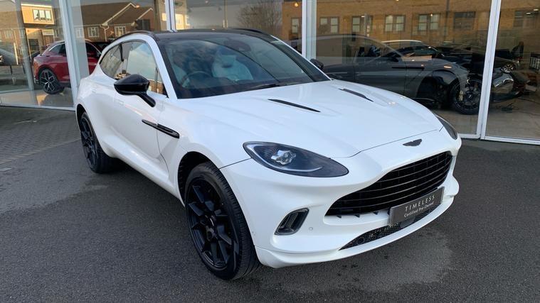 Over 30K of Optional Extras and a Q Special Interior trim on this beautiful Stratus White Aston Martin DBX. Full Aston Martin Service History and 12 Months Aston Martin Premium Warranty. Elegant Aston Martin DBX 550 finished in Stratus White with a beautiful Q Special Pale Blue and Onyx Black interior trim. Fitted with over 30K of Optional Extras including 22inch Sport Satin Black Alloy Wheels, Gloss Black Exterior Upper Pack, Q Special Inspire Comfort Duotone Trim, Sport Exhaust Upgrade, Contrast Stitching, Satin Dark Chrome Interior Jewellery Pack, Gloss Black Front Grille, Aston Martin Black Script and Wings Badging, Privacy Glass and more. Full Aston Martin Sercvice History and 12 Months Aston Martin Premium Warranty. Great Part Exchnage and Finance Offers Available.