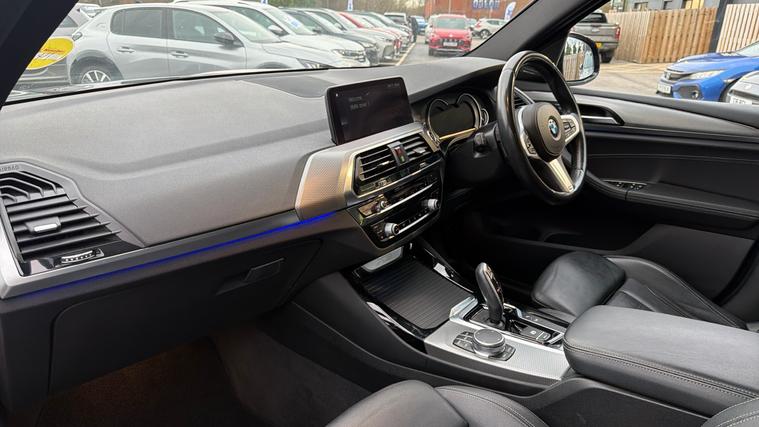 Comes Complete With The Plus Pack, LoudSpeaker System With Harman Kardon, Sun Protection Glass And Apple CarPlay. Combining dynamic performance with everyday practicality, this 2019 BMW X3 xDrive20d M Sport Automatic finished in striking Carbon Black delivers the perfect balance of luxury, capability and driving enjoyment. With BMW's renowned build quality, intelligent all-wheel drive and sporty M Sport styling, this X3 is a standout premium SUV. Powered by BMW's refined and efficient 2.0-litre diesel engine, paired with the smooth Steptronic automatic transmission, this X3 offers strong performance with impressive fuel economy. The xDrive all-wheel-drive system provides excellent grip and confidence in all driving conditions, making it equally capable on long motorway journeys or more challenging roads. Inside, the cabin is finished to a high standard and reflects BMW's driver-focused design. The M Sport interior features supportive sports seats, M Sport detailing, and premium materials throughout. Technology is centred around BMW's intuitive iDrive infotainment system, complete with satellite navigation, Bluetooth connectivity, DAB radio, and Apple CarPlay, ensuring you stay connected and entertained on every journey. Comfort and convenience are further enhanced with dual-zone climate control, cruise control, front and rear parking sensors, and automatic headlights and wipers, making this X3 a pleasure to drive whether in town or on the open road.