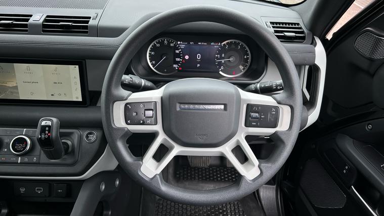 This brilliant Defender 90 Hard Top comes equipped with a range of essential features, demonstrating the pure qualities and excellence of Defender. Our Defender 90 Hard Top is finished in Santorini Black matched with 19-inch Style 6009 wheels, over Ebony fabric interior, and comes equipped with a great range of features, including, 8-way Heated power-recline front seats, Two-zone Climate Control, Privacy Glass, LED Headlights, Cruise Control and Speed Limiter, Lane Keep Assist, 360-degree Parking Aids, 3D Surround Camera, Apple CarPlay and Android Auto, DAB Radio, and more. Call today for more information.