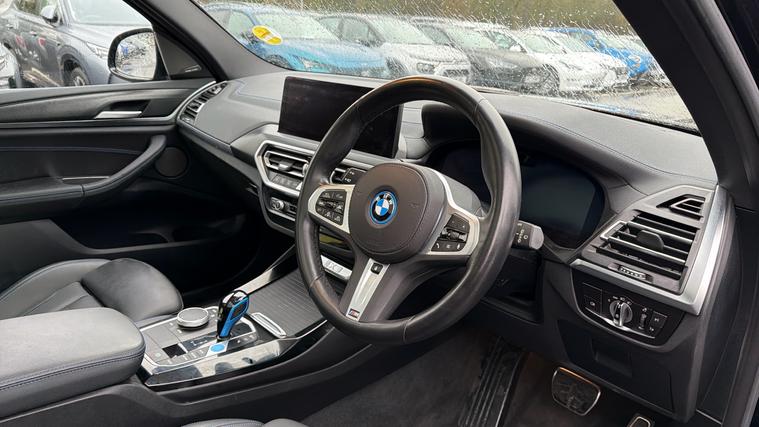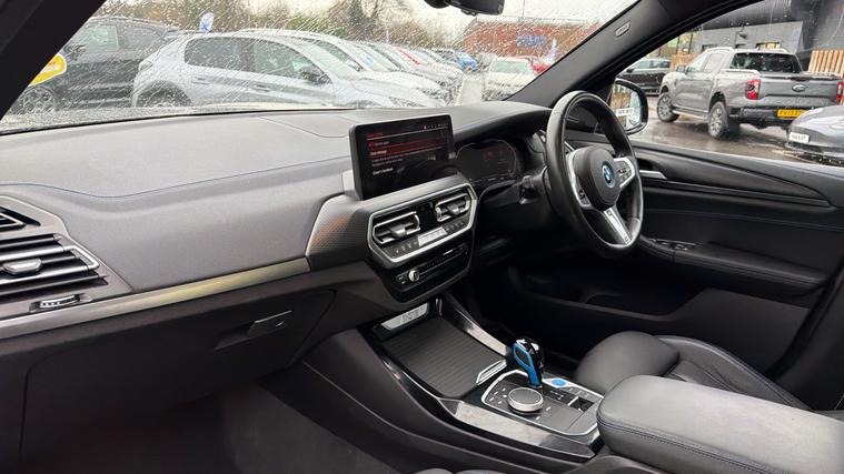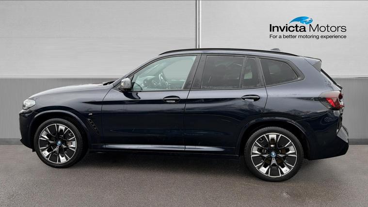 Features Include Keyless Entry, Adaptive Cruise Control, Front And Rear Parking Sensors, Lane Assist, Collission Warning And Traffic Sign Recognition. Experience premium electric driving with this 2022 BMW iX3 M Sport Pro, finished in the striking Carbon Black, delivering a sleek, athletic presence with unmistakable BMW design. Combining zero-emissions performance with luxury, technology and practicality, the iX3 is the perfect all-electric SUV for modern driving.Powered by a smooth and responsive 210kW electric motor, the iX3 offers effortless acceleration, near-silent cruising and an impressive 80kWh battery, providing excellent real-world range and low running costs. Rear-wheel drive ensures classic BMW balance and driving enjoyment, while multiple drive modes allow you to tailor the experience to your journey. The M Sport Pro specification elevates this iX3 with a sportier edge, featuring M aerodynamic styling, M Sport alloy wheels, blue M Sport brake calipers, and Shadowline exterior trim, giving the car a bold and premium road presence. Inside, the cabin showcases BMW's renowned build quality with a luxury feel throughout. Highlights include heated Vernasca leather seats, electric seat adjustment with memory, ambient interior lighting, and a panoramic glass sunroof, creating a bright and refined driving environment. The BMW Live Cockpit Professional with large digital displays, satellite navigation, Apple CarPlay + Android Auto, DAB radio, and Bluetooth connectivity ensures seamless connectivity and intuitive control.