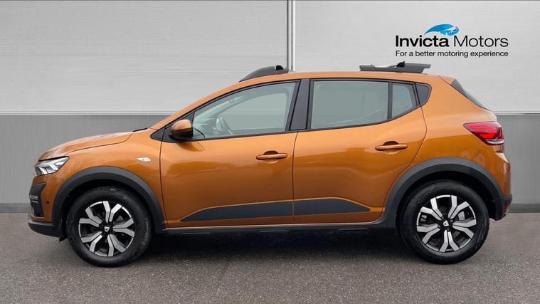 A stunning Dacia Sandero Stepway finished in the metallic Desert Orange. Experience the perfect blend of style and practicality with the Dacia Sandero Stepway 1.0 TCe Prestige. With its bold 16-inch alloys and sleek design, this compact SUV is ready to take on any journey. Stay seamlessly connected with Apple CarPlay and Android Auto. Navigate safely with Blind Spot Alert and Front and Rear Parking Sensors. Enjoy the comfort of Climate Control and the convenience of Keyless Entry. The Sandero Stepway delivers everything you need at an unbeatable price, ensuring you enjoy the drive without compromise. Discover Dacia's commitment to value and quality today.