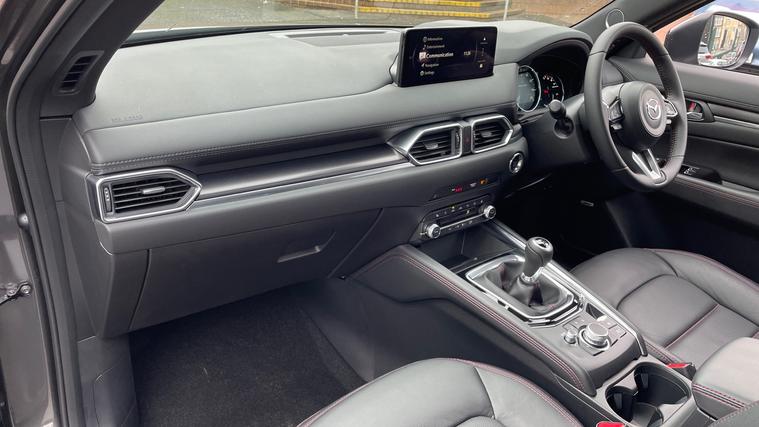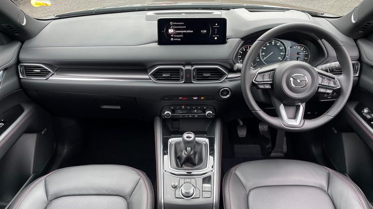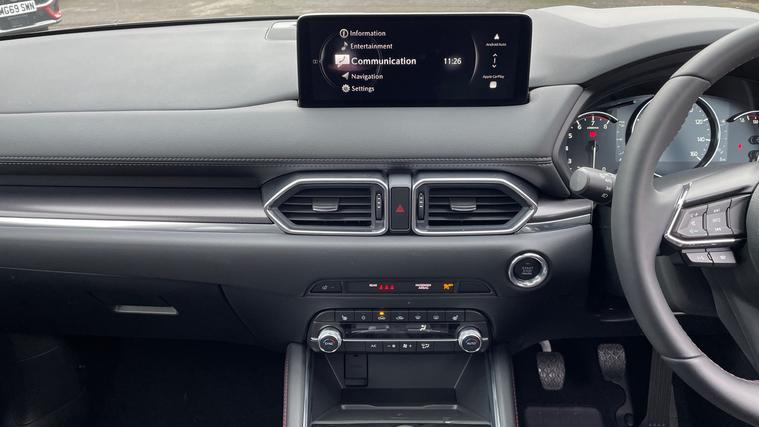 Our Mazda CX-5 comes equipped with Mazda Navigation, Blind Spot Warning, Adaptive Cruise Control, Apple CarPlay/Android Auto and Front/Rear Parking Sensors. Elevate your drive with the Mazda CX-5 2.0 e-Skyactiv G MHEV Homura. Experience seamless connectivity with a 10.25-inch TFT color display, Mazda Connect infotainment, and integrated systems for Apple CarPlay and Android Auto. Navigate effortlessly using the integrated Mazda Navigation System, and indulge in the Premium BOSE Sound System. Safety is paramount with Adaptive Cruise Control, Blind Spot Monitoring, and Rear Cross Traffic Alert. Parking is a breeze with front and rear sensors and a reversing camera. Enjoy comfort with a heated steering wheel, sunroof, and heated front seats. Embrace every journey with Mazda's innovative spirit.