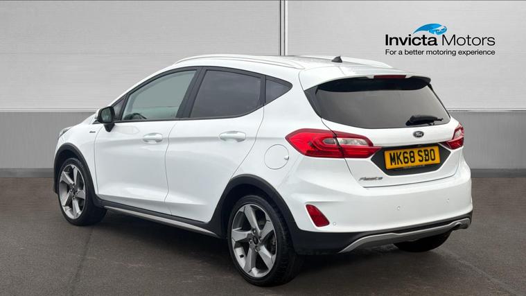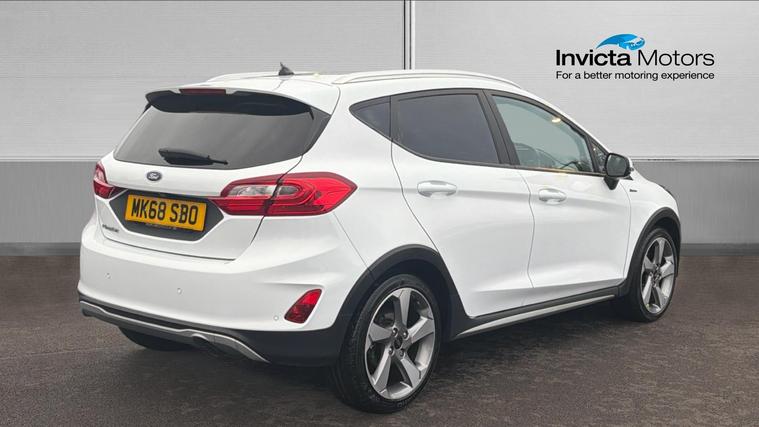 Features Include Rear View Camera And Parking Sensors, Air Conditioning, Cruise Control With Speed Limiter, DAB Radio And Bluetooth Connectivity. Sporty, efficient and versatile, this 2018 Ford Fiesta Active 1 finished in Frozen White blends the fun-to-drive character of the Fiesta with a more rugged, crossover-inspired design. With raised ride height and distinctive styling, the Fiesta Active is perfect for drivers wanting something a little different from the standard hatchback. Powered by Ford's award-winning 1.0 EcoBoost petrol engine producing 125bhp, this Fiesta delivers lively performance with excellent fuel efficiency, making it ideal for city driving, commuting and longer journeys. The confident handling and comfortable ride ensure an enjoyable drive in all conditions. The Active 1 specification includes SUV-inspired body styling, roof rails, unique alloy wheels, and protective cladding, giving the car a bold and practical appearance. Inside, the cabin is well laid out and comfortable, featuring air conditioning, cruise control with speed limiter, and a touchscreen infotainment system with DAB radio, Bluetooth connectivity, and USB input. Practicality is enhanced by the five-door layout, offering easy access for rear passengers and a flexible boot space with split-folding rear seatsideal for everyday use or weekend adventures.