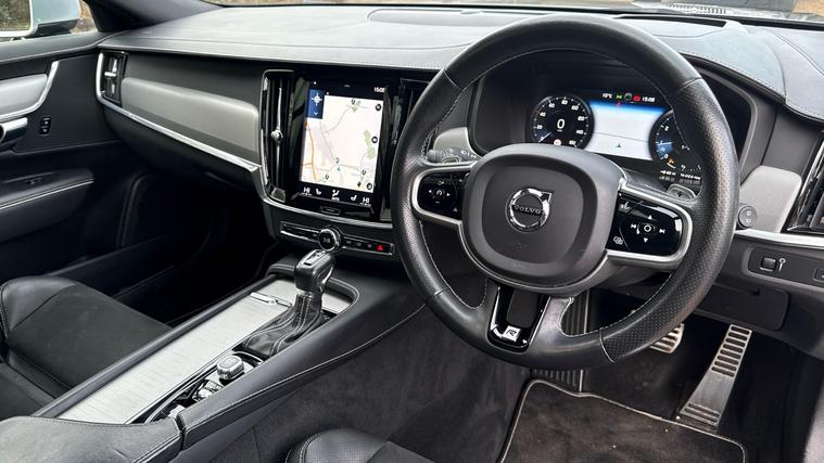 This 2019 19 plate Volvo V90 T5 R Design Pro Nav Auto is very low mileage. It has a fantastic spec that includes- 360 Cam, Pan Roof and Heads Up Display. Call us today. Invicta offer this very rare V90 T5 in the highest R Design Pro spec. This car has very low mileage at just over 28300 miles. It is 2 owners with Full Volvo Service History. This model integrates seamless technology with luxurious comfort. Navigate the road effortlessly with Pilot Assist and Adaptive Cruise, while staying aware of your surroundings through the Blind Spot Camera and 360 Camera. Enjoy the world above with the panoramic glass sunroof and keep your driving data within sight through the Heads Up Display. The privacy glass ensures an exclusive praivate and serene cabin environment. This V90 is designed for those who value premium quality while embracing safety and sophistication on every journey. Discover the art of refined driving.