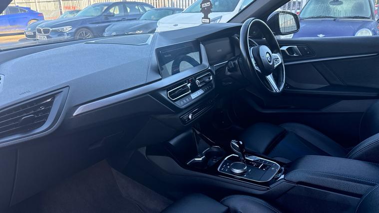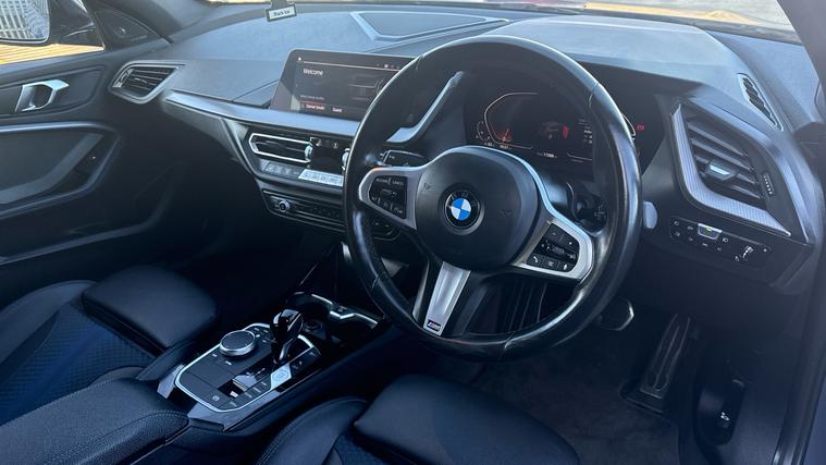 Blue M-Sport Brake Calipers, Heated Seats, Automatic Emergency Braking with Cyclist Protection, USB-C, Ambient Lighting, Privacy Glass, Full Leather with Black Headlining, Satnav, Bluetooth, DAB, Fron. Introducing the BMW 1 Series 118i M Sport: a driver's dream wrapped in elegance. Equipped with Blue M-Sport Brake Calipers and Full Leather with Black Headlining, sophistication meets performance. Enjoy the comfort of Heated Seats and the luxury of Ambient Lighting as Keyless Entry welcomes you to modern refinement. Navigate with ease using our intuitive Satnav and stay connected via Bluetooth and USB-C. Safety takes center stage with Automatic Emergency Braking featuring Cyclist Protection. Stay sharp and secure with Privacy Glass, Automatic Lights, and Wipers. Savor every drive with DAB, Front and Rear Sensors. Embrace precision; embrace the essence of BMW.