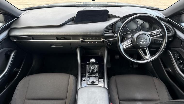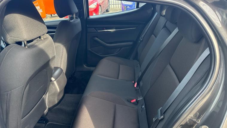 Rear Parking Sensors Heads up Display, ISOFIX, Bluetooth, DAB, Navigation, Black Headlining, Power Folding Mirrors, Keyless Start . Experience driving redefined with the Mazda 3 2.0 e-Skyactiv G MHEV SE-L 5dr. Step into a world of seamless innovation with rear parking sensors for effortless maneuvering and a dynamic heads-up display to keep your eyes on the road. Enjoy the convenience of keyless start, ISOFIX for secure child seating, and power folding mirrors for a modern touch. Stay connected with Bluetooth and DAB navigation to guide your adventures. All this, elegantly wrapped in sleek design, complete with black headlining. Discover how Mazda intertwines performance with sophistication, offering an unparalleled journey every time you hit the road. Drive forward.