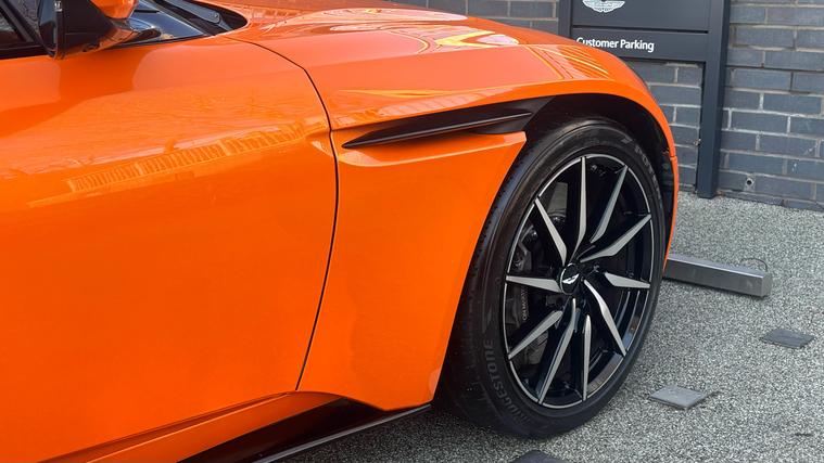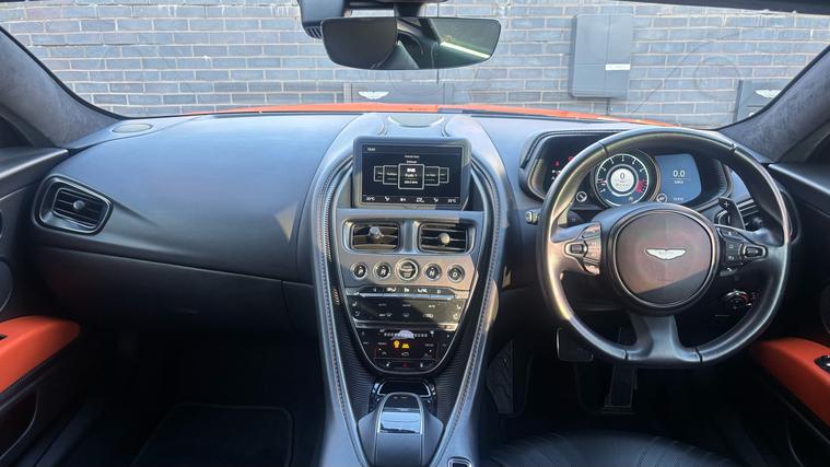 Q Special Cayucos Orange Paint and over 29K of Optional Extras including Full Exterior Black Pack. Full Aston Martin Service History and 12 Months Aston Martin Warranty. Head turning Q Special Cayucos Orange DB11 4.0 V8 Coupe with a contrasting Onyx Black and Californian Poppy Interior trim and fitted with over 29K of Optional Extras. These include Full Exterior Black Pack, 20inch Gloss Black Diamond Turned Alloy Wheels, Satin Carbon Fibre Trim Inlay, Smoked Tail Lights, Interior Technology Pack, Satin Dark Chrome Interior Jewellery Pack, Gloss Black Roof, Duotone Leather, Alcantara Headlining, Contrast Stitching And Welt, Ventilated Seats, Q Machined Carbon Fibre Aston Martin Wings and Script and much more. Full Aston Martin Service History and 12 Months Aston Martin Premium Warranty.
