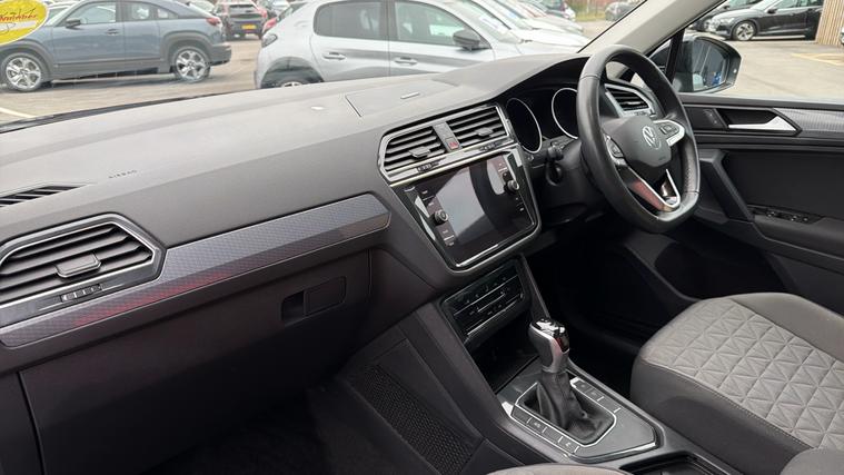 Features Include Features Include Satellite Navigation, Apple CarPlay And Android Auto, Front And Rear Parking Sensors, Air Conditioning And Hill Start Assist. Practical, refined and highly efficient, this 2023 Volkswagen Tiguan Life finished in Deep Black Pearl offers excellent comfort, modern technology and strong diesel performance. As one of the UK's most popular mid-size SUVs, the Tiguan is perfectly suited to family life, commuting and long-distance driving. Powered by the proven 2.0 TDI diesel engine and paired with a smooth DSG automatic gearbox, this Tiguan delivers effortless motorway cruising, strong pulling power and impressive fuel economy. The refined suspension setup ensures a comfortable and composed drive in all conditions. The Life specification provides a generous level of standard equipment, including adaptive cruise control, front and rear parking sensors, air conditioning, and a touchscreen infotainment system with satellite navigation, Apple CarPlay + Android Auto, DAB radio, and Bluetooth connectivity. Inside, the Tiguan offers a spacious and well-finished cabin with excellent visibility and supportive seating. The flexible interior layout and large boot space make it ideal for families, while split-folding rear seats add further versatility.
