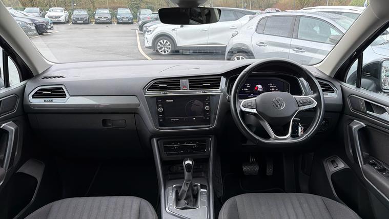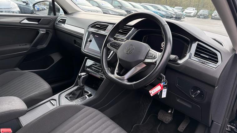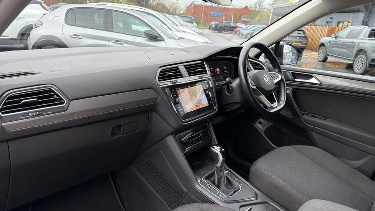 Features Include Apple CarPlay And Android Auto, Adaptive Cruise Control, Front And Rear Parking Sensors, Satellite Navigation And Hill Start Assist. Practical, refined and efficient, this 2022 Volkswagen Tiguan Life finished in Deep Black Pearl offers excellent comfort, modern technology and strong petrol performance. As one of the UK's most popular mid-size SUVs, the Tiguan is perfectly suited to family life, commuting and long-distance driving. Powered by the smooth and economical 1.5 TSI petrol engine and paired with Volkswagen's responsive DSG automatic gearbox, this Tiguan delivers refined performance with impressive fuel efficiency. The well-balanced suspension ensures a comfortable and composed drive on both urban roads and motorways. The Life specification provides a generous level of standard equipment, including adaptive cruise control, front and rear parking sensors, air conditioning, and a touchscreen infotainment system with satellite navigation, Apple CarPlay + Android Auto, DAB radio, and Bluetooth connectivity. Inside, the cabin is spacious and well finished, offering supportive seating, excellent visibility and intuitive controls. The large boot and split-folding rear seats provide outstanding practicality, making it ideal for families or active lifestyles.