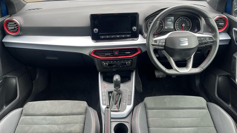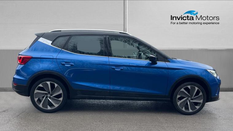 Our SEAT Arona features desirable kits such as Full Link Smartphone Integration, Cruise Control with Speed Limiter, Rear Parking Sensors and even Wireless Phone Charger. Discover the dynamic SEAT Arona 1.0 TSI 110 FR Edition, where style meets advanced technology. With its striking design, this versatile SUV features an impressive 8.25-inch touchscreen display, ensuring seamless Bluetooth audio streaming and handsfree operation. Keep your world connected with Full Link Smartphone Integration. Navigate effortlessly with rear parking sensors and stay comfortable with dual-zone climate control. Enjoy ultimate control with cruise control and speed limiter as the analogue cockpit offers classic charm alongside cutting-edge functionality. Experience freedom and efficiency in every journey. The Arona FR Edition, where innovation meets your lifestyle.
