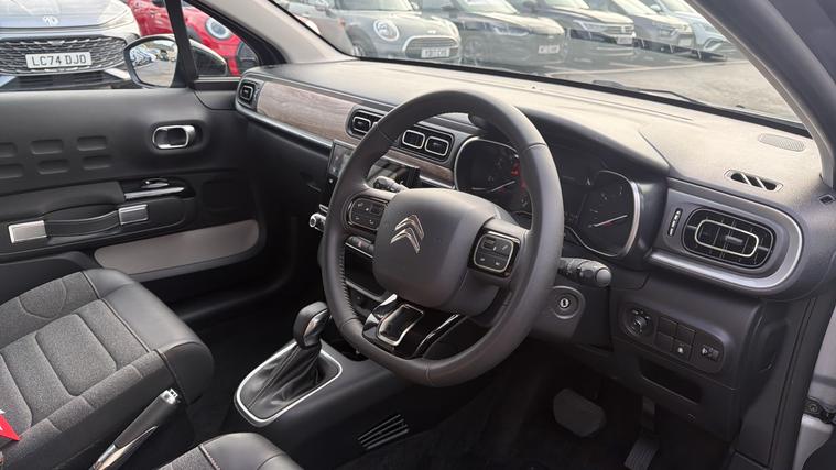 We pride ourselves in only providing vehicles of the highest of standards - all vehicles are taken through a pre-delivery inspection and are fully HPI checked for your peace of mind. Efficient, stylish, and comfortable, this 2024 Citron C3 Max in Cumulus Grey offers a modern small hatchback experience with excellent everyday practicality. Ideal for city driving, commuting, or first-time buyers, the C3 combines low running costs with a smooth and refined ride. Powered by the 1.2 PureTech 110 petrol engine paired with a smooth EAT6 automatic transmission, the C3 delivers responsive performance, effortless city manoeuvrability, and impressive fuel efficiency for everyday use. The Max specification adds extra features for comfort and convenience, including touchscreen infotainment with satellite navigation, Apple CarPlay + Android Auto, DAB radio, Bluetooth connectivity, and rear parking sensors, making each journey connected and stress-free.