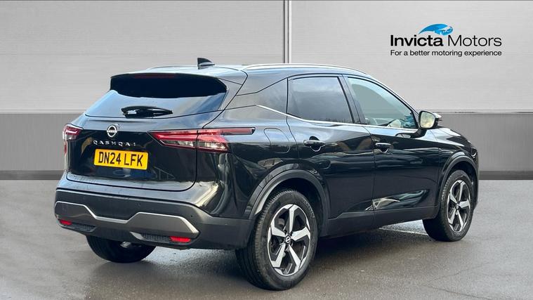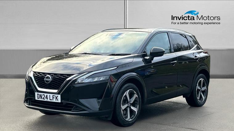 A well-specified Qashqai N-Connecta that mixes modern tech, practical safety features and everyday comfort with efficient performance. A refined and versatile compact SUV. The 2024 Nissan Qashqai 1.3 DiG-T MH 158 N-Connecta 5-dr Xtronic is a well-equipped compact SUV that blends modern tech, comfort and efficient performance. It's powered by a 1.3 litre turbocharged petrol engine producing around 158 bhp, paired with a smooth Xtronic automatic gearbox that helps deliver brisk acceleration and practical everyday driving. The cabin features dual-zone automatic climate control, a touchscreen infotainment system with built-in navigation, Apple CarPlay + Android Auto integration, Bluetooth audio and multiple USB-C ports, making connectivity simple and intuitive. Practical safety and driver-assist systems include blind-spot warning, intelligent cruise control, intelligent front and rear automatic braking, lane-keep assist and rear parking sensors, helping to make city and motorway journeys easier and more confident. Comfort and convenience are boosted with heated electric mirrors, privacy-tinted rear glass, stylish 18 alloy wheels, keyless entry + start, and a versatile five-door layout with generous boot space. Ideal for daily life and longer trips alike. The Qashqai also benefits from strong safety ratings and a well-balanced blend of features that suit families and daily commuters.