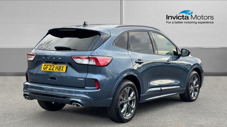 A stunning low mileage self charging Kuga ST-Line Edition, finished in the metallic Chrome Blue. Never lose your way again with the inbuilt Sat Nav, plus our Kuga comes with Power Tailgate, Cruise Control, Automatic Headlights, Rain Sensing Wipers, Front and Rear Parking Sensors with Colour Rear Camera, One-Touch Electric Windows, Ford SYNC Bluetooth, Dual Zone Climate Control, and a DAB Radio with USB and AUX in. Qualifies for Warranty4Life*.