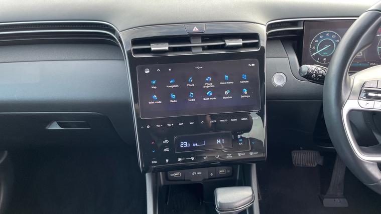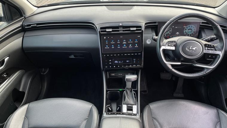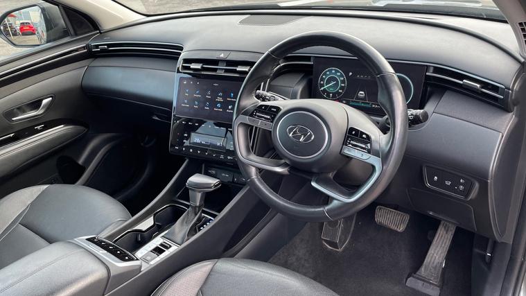A stunning Hyundai Tucson Ultimate finished in the metallic Amazon Grey. Discover the ultimate driving experience with the Hyundai Tucson 1.6 TGDi 48V MHD 180 Ultimate 5dr 4WD DCT. Perfectly designed for those who crave adventure and comfort, this SUV features a sliding panoramic sunroof to let the outdoors in, while Blind Spot Alert ensures safer journeys. The power tailgate and keyless entry offer convenience at every turn. Enjoy luxurious heated and cooled front seats, and let the KRELL Audio system provide an exceptional soundtrack. The driver's electric seat with memory caters to your preferences, complemented by a reverse camera for seamless parking. Embrace sophistication and innovation with the Hyundai Tucson.