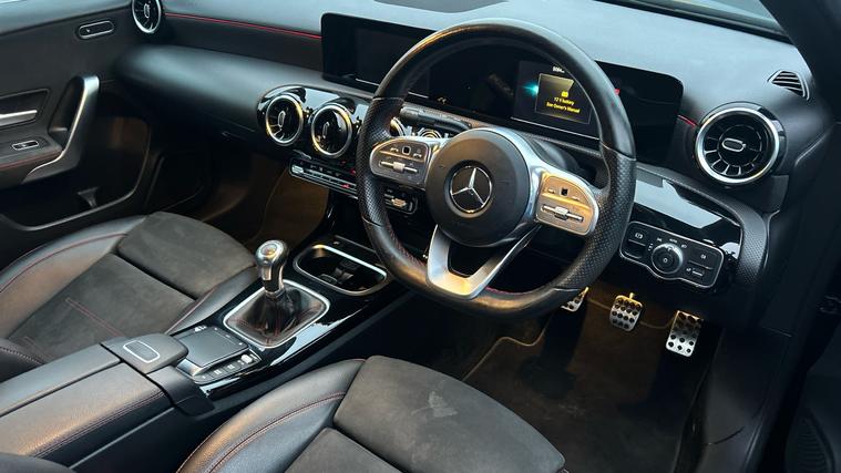 A stylish and refined A200 AMG Line. Strong tech, sporty design and premium feel make this a standout compact hatch. The 2020 Mercedes-Benz A200 AMG Line 4-door delivers a premium compact hatch experience with sporty styling, refined comfort and strong everyday usability. Powered by a smooth yet responsive petrol engine paired with a slick automatic gearbox, it offers confident performance whether in town or on the open road. Inside, the AMG Line specification brings sports-style seats with quality upholstery, a leather-wrapped multifunction steering wheel with paddle shifts, dual-zone climate control and ambient interior lighting. Technology includes Mercedes' intuitive MBUX infotainment system with touchscreen and touch-pad controls, built-in navigation, Apple CarPlay + Android Auto, Bluetooth connectivity and a digital driver display. Practical touches such as keyless entry + start, front + rear parking sensors with a reversing camera, cruise control and smart storage spaces add everyday convenience. On the outside, AMG Line styling features larger alloy wheels, sport body-kit elements, LED headlights and a dynamic silhouette that gives this A-Class a distinctive, premium presence.