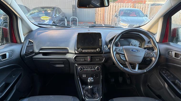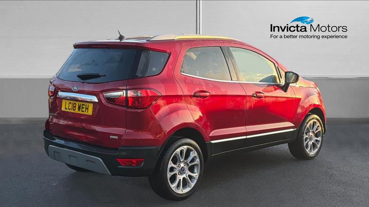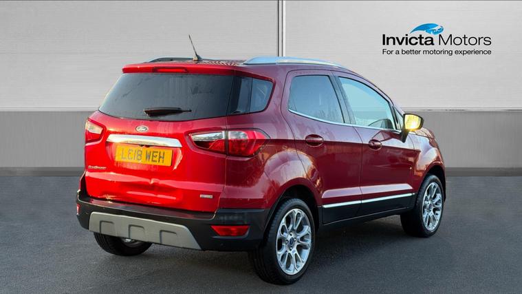 We pride ourselves in only providing vehicles of the highest of standards - all vehicles are taken through a pre-delivery inspection and are fully HPI checked for your peace of mind. Compact, efficient, and well equipped, this 2018 Ford EcoSport 1.0 EcoBoost Titanium in Ruby Red offers a raised driving position, modern technology, and excellent everyday usability. A great choice for drivers wanting SUV styling with hatchback running costs. Powered by Ford's award-winning 1.0-litre EcoBoost petrol engine producing 125PS, the EcoSport delivers lively performance with strong fuel economy, making it ideal for both city driving and longer motorway journeys. The Titanium trim provides a generous level of specification, including touchscreen infotainment with SYNC, satellite navigation, Apple CarPlay + Android Auto, Bluetooth connectivity, DAB radio, cruise control, and climate control, ensuring comfort and convenience on every drive.