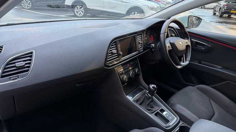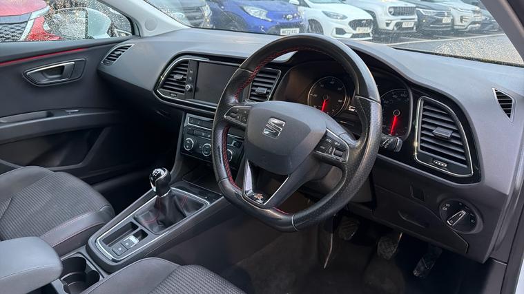 Features Include Convenience Pack Plus, Apple CarPlay And Android Auto, Cruise Control And Parking Sensors. Sporty, efficient, and packed with technology, this 2018 SEAT Leon 2.0 TDI 150 FR Technology in Nevada White offers dynamic performance, low running costs, and everyday practicality. A brilliant choice for drivers wanting a sharp-looking hatchback with strong motorway ability. Powered by the 2.0-litre TDI diesel engine producing 150PS, the Leon delivers excellent fuel economy with plenty of pulling power, making it ideal for longer journeys. The confident handling and FR sports suspension provide an engaging yet comfortable drive. The FR Technology trim adds a strong level of specification and sporty styling, including FR body styling, alloy wheels, LED headlights, and a distinctive interior with sports seats and a flat-bottom steering wheel. Inside, the cabin features satellite navigation, touchscreen infotainment, Bluetooth connectivity, DAB radio, Apple CarPlay + Android Auto, and dual-zone climate control, ensuring comfort and connectivity on every drive.
