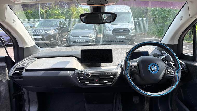 Features include Dusk+Rain Sensors, Climate Control, Front+Rear Parking Sensors, Cruise Control+Speed Limiter and even Hill Hold Assist. This 2020 BMW i3, finished in crisp Fluid Black with Highlight BMW i Blue, is a forward-thinking electric hatchback that blends premium quality, innovative design, and zero-emissions motoring. Ideal for urban drivers and eco-conscious professionals, the i3 offers a truly unique driving experience wrapped in a compact yet futuristic package. Powered by a fully electric motor delivering 170 PS, the i3 offers smooth, instant acceleration and a quiet ride. The automatic transmission and responsive handling make it perfectly suited for both city commuting and longer drives. With a range of up to 190 miles (WLTP) depending on driving style and conditions, it's practical and efficient for daily use. Inside, the i3 features a distinctive and modern cabin, built with sustainable materials including natural fibres and recycled plastics. Despite its compact dimensions, the interior feels spacious and airy, thanks to a clever layout and large windows. Standard features include a 10.25-inch digital display, satellite navigation, Bluetooth, DAB radio, and Apple CarPlay, keeping you connected and in control.