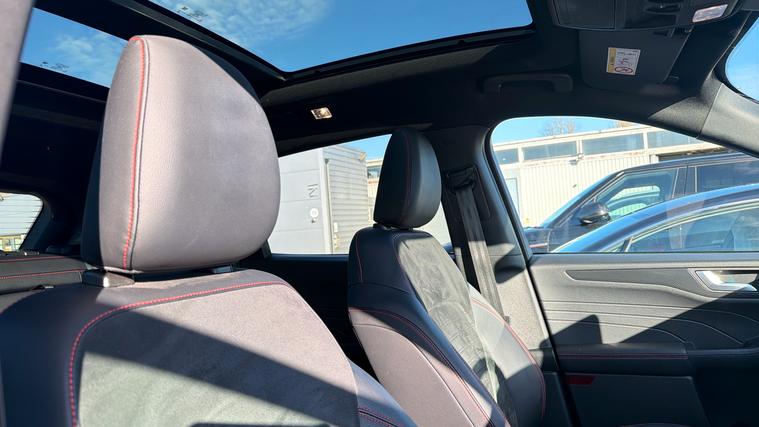 A stunning Plug In Hybrid Ford Kuga finished in the metallic Solar Silver. Lovely Hybrid Kuga in Solar Silver with Black Alcantara. This car is one of our staff vehicles so we know it very well and have always looked after it. High specification including Sat Nav, Sliding Panoramic Sunroof, Heated Front and Rear Seats, Power Tailgate, Cruise Control, Automatic Headlights, Rain Sensing Wipers, Front and Rear Parking Sensors with Colour Rear Camera, One-Touch Electric Windows, Ford SYNC Bluetooth, Dual Zone Climate Control, DAB Radio and more. Just serviced. 12 months warranty included. Part exchange and finance available.