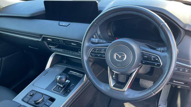 Our Mazda CX-60 comes equipped with Mazda Navigation, Reverse Camera, Heated Front Seats, Wireless Apple CarPlay/Android Auto and even Heated Steering Wheel. Elegantly equipped with a 12.3in TFT Colour display, this masterpiece blurs the line between technology and sophistication. Enjoy seamless connectivity with Integrated Bluetooth, Wireless Apple CarPlay, and Android Auto. Navigate with confidence using European maps. Safety is our priority: Blind Spot Monitoring, Driver Attention Alert, and Rear Parking Sensors are your co-pilots. Comfort reigns with heated leather seats, a heated steering wheel, and Auto Power Folding Door Mirrors. Experience the elegance of a Power Liftgate and the assurance of a Reversing Camera. Elevate every drive with Mazda.