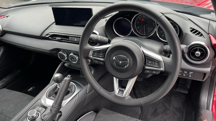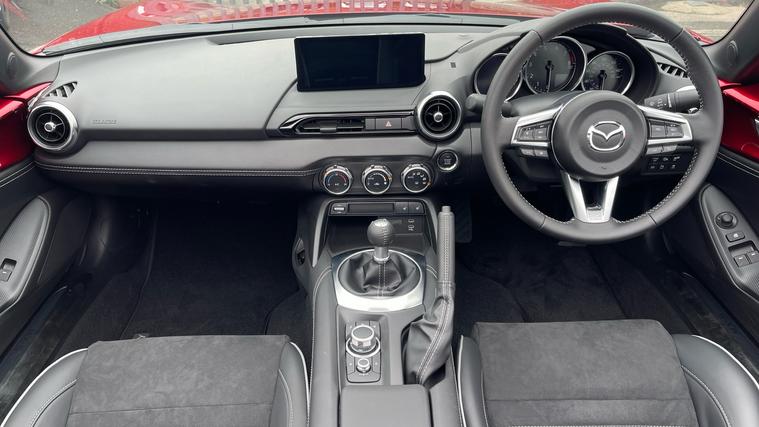 Specification of our newly registered Mazda MX-5 RF with massive savings from new list price includes Heated Front Seats, Reverse Camera, Hardtop and even Navigation. Unleash your inner driver with the Mazda MX-5 RF 2.0 184 Homura 2dr. Enjoy the perfect harmony of technology and performance with an 8.8in TFT Colour Centre Display, AM-FM-DAB Radio, and Integrated Bluetooth System. Navigate with ease using the Mazda Navigation System, offering European Mapping and Alternative Route Calculations. Stay connected with Wireless Apple CarPlay and Wired Android Auto. Drive confidently with Blind Spot Monitoring, Rear Cross Traffic Alert, and Driver Attention Alert. Take comfort in the power-retractable two-tone hardtop, 3-stage seat heaters, and climate control. Experience exhilaration and innovation in the ultimate roadster. Drive spirited, drive Mazda.
