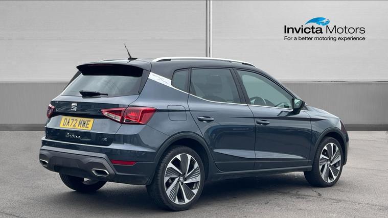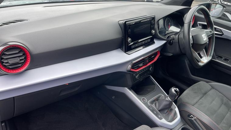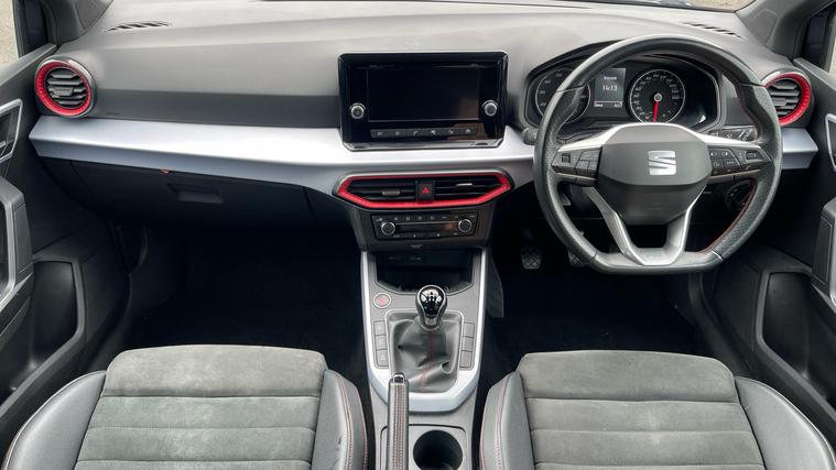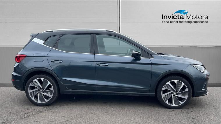 Our SEAT Arona features desirable kits such as Full Link Smartphone Integration, Cruise Control with Speed Limiter, Rear Parking Sensors and even Wireless Phone Charger. Discover the dynamic SEAT Arona 1.0 TSI 110 FR Edition, where style meets advanced technology. With its striking design, this versatile SUV features an impressive 8.25-inch touchscreen display, ensuring seamless Bluetooth audio streaming and handsfree operation. Keep your world connected with Full Link Smartphone Integration. Navigate effortlessly with rear parking sensors and stay comfortable with dual-zone climate control. Enjoy ultimate control with cruise control and speed limiter as the analogue cockpit offers classic charm alongside cutting-edge functionality. Experience freedom and efficiency in every journey. The Arona FR Edition, where innovation meets your lifestyle.