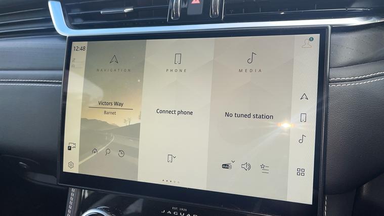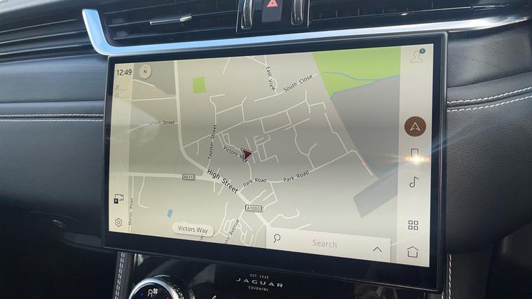 The 2022 F-PACE R-Dynamic HSE combines luxury craftsmanship, top-tier tech and real SUV practicality. Everything you expect from Jaguar, all in one exceptional package. Finished in Santorini Black Metallic with Ebony Hide Seats. Also fitted with Head up Display. The 2022 Jaguar F-PACE R-Dynamic HSE is a luxury SUV designed to impress inside and out. In the cabin you'll discover twin 10-inch high-resolution screens (digital driver display + infotainment), premium leather upholstery with contrast stitching, heated + ventilated front seats, ambient interior lighting. Connectivity is robust with wireless Apple CarPlay + Android Auto, dual-smartphone Bluetooth pairing, WiFi hotspot functionality and a wireless device charger. Outside, striking 20-inch alloys, Matrix LED headlights with signature DRLs, premium gloss-black grille and roof rails contribute to a bold presence. Practical features include a powered tailgate, 60/40 split folding rear seats with a flat load floor, front + rear parking sensors + 360 camera, blindspot assist, lane-keep aid, and adaptive cruise control. From premium materials and advanced tech to everyday usability, this F-PACE delivers a refined driving experience that feels upscale and thoroughly modern.