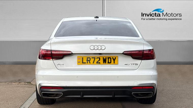 Discover power, elegance and luxury with the Audi A4 40 S Line Auto. This model has just 1 Owner and features Apple Carplay, Navigation and the Comfort and Sound Pack. Book a test drive now!. Introducing the 2022 Audi A4 40 S Line Auto, finished in Glacier White Metallic. This 1 Owner 4dr Saloon has been well looked after and fully serviced at Audi. Experience a consistent, smooth journey with Audi Drive Select, Lane Assist and Cruise Control. Plus, MMI Navigation Plus keeps you on track to your destination. Apple Carplay and Android Auto guarantee seamless connectivity, while DAB Radoi provides endless entertainment. Convenience is key with High Beam Assist, Electric Boot Lid Release, Power Folding Mirrors and Rain Sensing Wipers. Privacy Glass looks great against the 'Glacier White' finish, and keeps your belongings out of sight! The Comfort and Sound Pack enhances the Audi in every way, providing a Wireless Charger, Heated Seats, Rear View Camera and Bang and Olufsen Speakers. Stay comfortable, no matter the weather, with Dual Climate Control. Don't miss the opportunity to own this stunning Audi A4 S Line - call today.