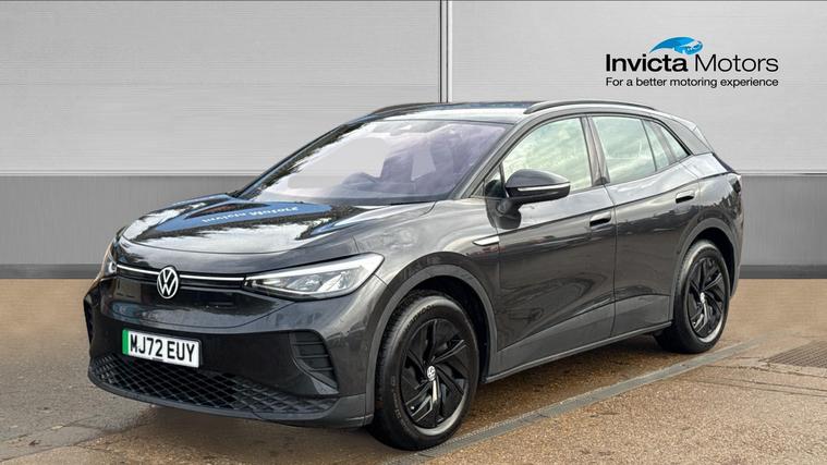 Our Volkswagen ID4 Life Pure Auto has just 1 Previous Owner! Equipped with a Wireless Charger, Parking Sensors and Adaptive Cruise, this electic SUV has it all!. Introducing the Volkswagen ID4 Life Pure Auto, the Full Electric SUV defines power and excellence. Motorway driving is simple with Adaptive Cruise Control and BLIS. Long journeys are a breeze with Wireless Charging and Apple CarPlay. Park with confidence using the Rear View Camera and Sensors. Convenience is key with Heated Door Mirrors and Automatic Lights and Wipers. Choose 1 of 30 colours for Interior Ambient Lighting, making each drive an experience. Stay comfortable and cosy with Cloth Upholstery, Heated Seats and Climate Control. Drive the fantastic VW ID4 today!.