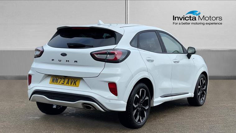 A stylish low mileage Puma ST-Line X with reverse camera, wireless charging pad, touchscreen navigation and more. Never lose your way again with the inbuilt Sat Nav, plus this Puma is fitted with Automatic Headlights, Rain Sensing Wipers, Cruise Control, Lane Keeping Aid, Rear Parking Sensors, Ford SYNC3 Bluetooth, One-Touch Electric Front Windows, a Heated Windscreen, Air Conditioning and a DAB Radio with USB in. Qualifies for Warranty4Life*.
