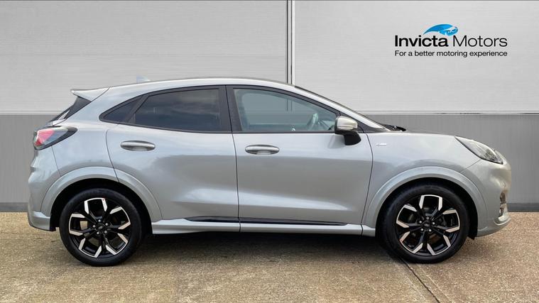 A lovely low mileage Solar Silver Puma ST-Line X with under 20, 000 miles. Never lose your way again with the inbuilt Sat Nav, plus this Puma is fitted with Automatic Headlights, Rain Sensing Wipers, Cruise Control, Lane Keeping Aid, Rear Parking Sensors, Ford SYNC3 Bluetooth, One-Touch Electric Front Windows, a Heated Windscreen, Air Conditioning and a DAB Radio with USB in. Qualifies for Warranty4Life*.
