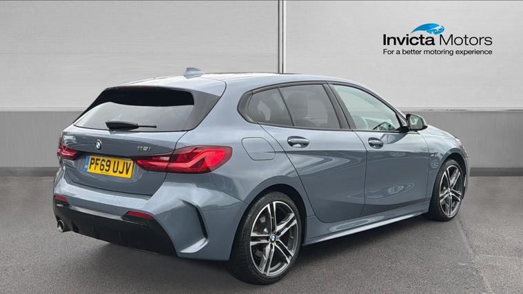 Features Include Dual Clutch Auto Transmission, Sun Protection Glass, Apple CarPlay And Android Auto, Climate Control And Front And Rear parking Sensors. This 2020 BMW 118i M Sport 5dr Step Auto in Storm Bay Metallic combines dynamic performance with premium styling and everyday comfort. Powered by a responsive 1.5-litre petrol engine paired with a smooth automatic Step gearbox, it delivers engaging driving dynamics alongside efficient performance suited to both city driving and longer journeys. The M Sport specification adds sporty exterior design, upgraded interior trim, and advanced technology features, making this 1 Series a stylish, well-equipped, and practical hatchback for daily use.