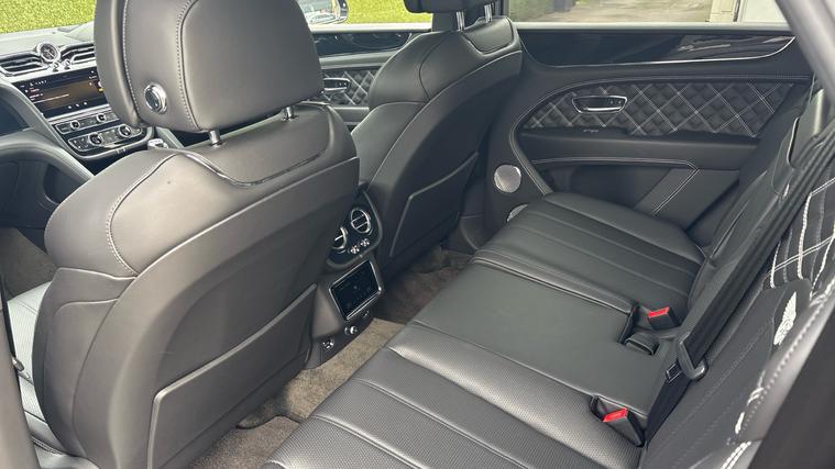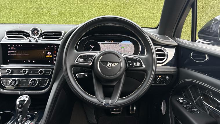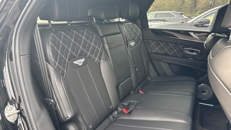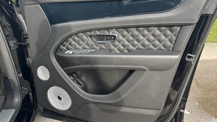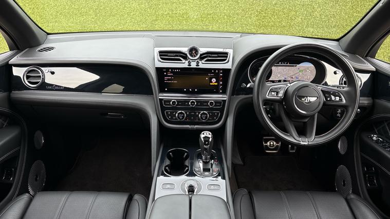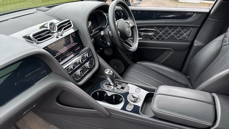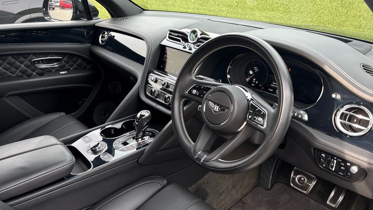 Bentley Bentayga 4.0 V8 First Edition finished in Beluga Black with Beluga Black quilted leather interior and white stitching. First Edition Specification including City and Touring Specification, Panoramic Sunroof, Bentayga Blackline Specification, Rear Privacy Glass (with Acoustic Side Glazing), Heated, Single Tone, 3 Spoke, Hide Trimmed Steering Wheel, Hands Free Tailgate, Pay TV and Digital TV Tuner (in Addition to Digital Radio), Five Seat Comfort Specification for First Edition.