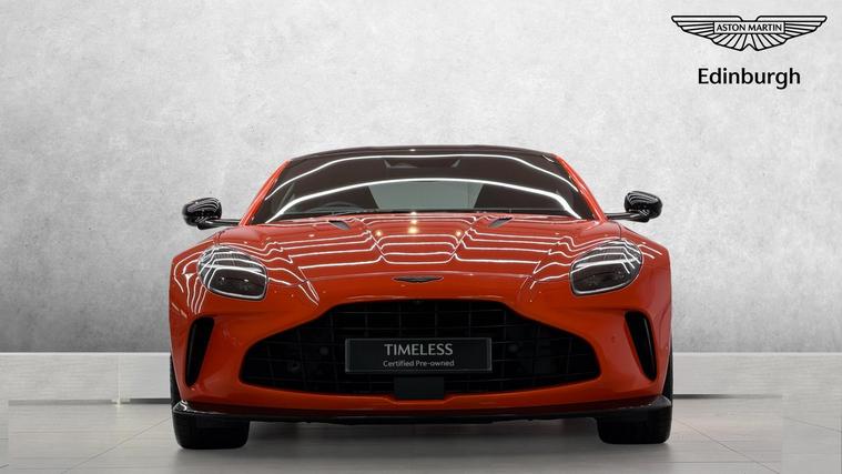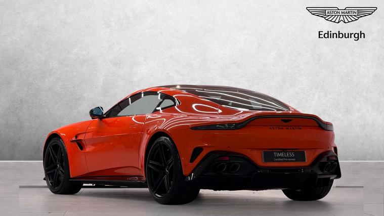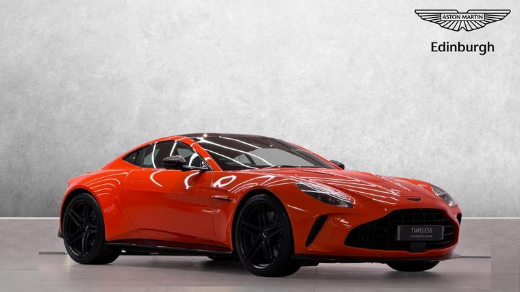 ASTON MARTIN EDINBURGH are delighted to offer for sale this beautiful 25MY Vantage Coupe finished in Synapse Orange metallic paint with a full Onyx Black leather and alcantara interior. ASTON MARTIN EDINBURGH are delighted to offer for sale this gorgeous, one owner from new 25MY Vantage Coupe with the following factory specification: Synapse Orange Metallic Paint, Onyx Black Leather/Alcantara Accelerate Interior, 360 Surround View Cameras, Configurable Ambient Lighting, Gloss Black Lower and Upper Exterior Packs, Blind Spot Monitoring, Heated Seats, Keyless Entry, Sports Plus Seats with 16 Way Electrics and Memory Function, Black Wings and Script Badges, Black Painted Brake Calipers, Dark Finish Front Grille, Gloss Black Roof, California Poppy Contrast Stitching, Heated Sports Steering Wheel, Smoked Tail Lights, Stolen Vehicle Tracker, 21 Inch 5 Spoke Forged Alloys in Satin Black and much more. This stunning example will come with the remainder of manufacturers warranty until October 2027 and service plan until October 2029. For further information and a personalised walkaround video please contact a member of the sales team at ASTON MARTIN EDINBURGH.