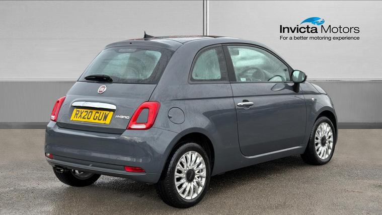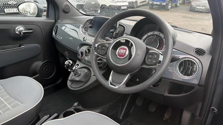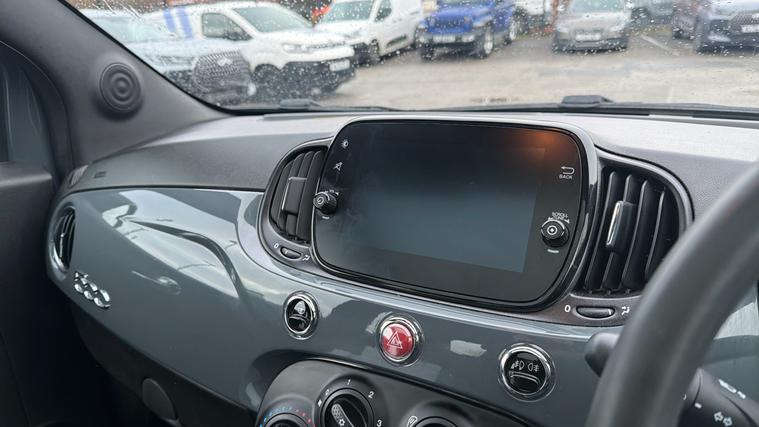 Fitted with the new 1.0 Hybrid Engine, the Fiat 500 hatchback is a stunning city car that offers exceptional economy and high levels of style. Call now to arrange viewing. The 'Lounge' trim looks fantastic with the Chrome Exterior Details and includes as standard a Fixed Glass Sunroof, Rear Parking Sensors, Bluetooth Connectivity and Air Conditioning. 185 litres of luggage space is provided in the boot of the 500 and can be expanded when the rear seats are lowered. A Chequered Cloth upholstery is provided on the Lounge trim and is paired with Leather details on the Steering Wheel and Seat Backs. The rear includes Isofix Points with a Height Adjustable Driver Seat. A 7-inch 'UConnect' display is placed on the dashboard with Bluetooth, USB and AUX media connections. AM/FM radio bands are provided too with Apple Carplay and Android Auto functions.