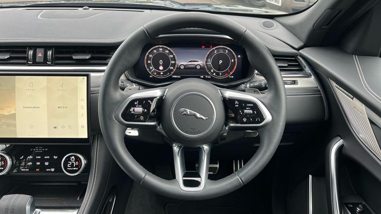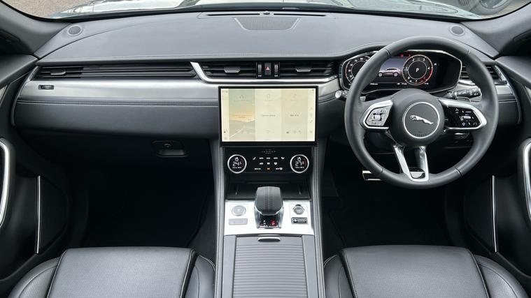 Our fantastic Jaguar F-Pace is presented in a stunning specification with a great range of brilliant features and optional extras, complimenting a sublime drive. Our F-Pace R-Dynamic SE Black is finished in Santorini Black matched with the Black Exterior Pack and 19-inch Style 5037 wheels in Gloss Black, over Ebony Grained leather interior, and comes equipped with some brilliant features and optional extras, including, 12-way Heated front seats with Driver Memory function, Two-zone Climate Control, Meridian Sound System, Privacy Glass, Fixed Panoramic Roof, LED Headlights with Signature DRL, Adaptive Cruise Control, Lane Keep Assist, Blind Spot Assist, Front and Rear Parking Aids, Rear Camera, Apple CarPlay and Android Auto, DAB Radio, Wireless Device Charging, and much more. Call today for more information.