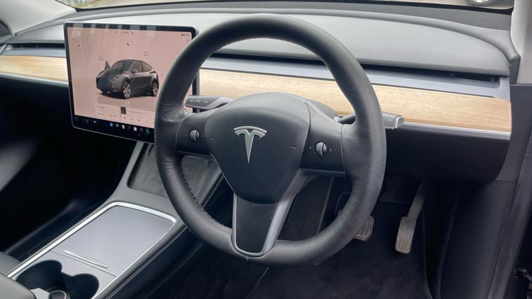 Features include a Fixed Glass Sunroof, a Rear Camera, Cruise Control, Navigation, a Heated Steering Wheel and even Folding Mirrors. Experience the pinnacle of electric driving with the Tesla Model Y Long Range AWD 5dr Auto. Immerse yourself in unrivaled innovation and luxury within its spacious cabin. The panoramic sunroof illuminates the interior, featuring Black Manufactured Leather upholstery, heated front seats, and adjustable electric seating. Navigate your journey using the landscape central display with DAB radio and fluid Bluetooth/USB connectivity. Advanced navigation ensures you stay on course, while Tesla's cutting-edge technology propels you into the future. Drive the revolution with Tesla's commitment to excellence, redefining what it means to be behind the wheel of an electric vehicle.