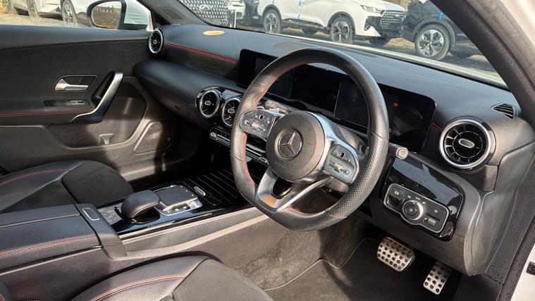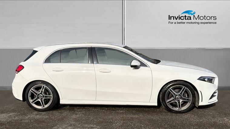 Features of this model include a Rear Parking Camera, LED Lights w/Dusk and Rain Sensors, Dual Zone Climate Control and even Cruise Control/Speed Limiter. Over the 30 year life of the A-Class, Mercedes has drastically changed the recipe to keep the car modern and fresh. Being one of the first premium hatchbacks in the UK market, the A-Class has a massive following and in it's 3rd generation now, it has only got bigger. For this model, Mercedes launched some new, more efficient engines to the line-up, including the A180 Petrol Engine which is found in our 'AMG Line' car. This utilises a low consumption 1.3 Turbo Petrol to produce 136ps and propels the A-Class to 60 in just 8.8 seconds. The exterior of the car is unchanged though with this engine, so the Polar White Gloss paint still glides over the curvaceous bodywork perfectly and is complemented by 18in Alloy Wheels. 'Artico Leather and Dinamica Suede' upholstery trims the Sport Style Front Seats perfectly, and continues into the spacious rear. The dashboard is flanked by 2 7in displays for the instrument panel and media system. The 'MBUX' media system includes the latest connectivity options, such as Bluetooth and DAB radio bands, with Navigation included too.