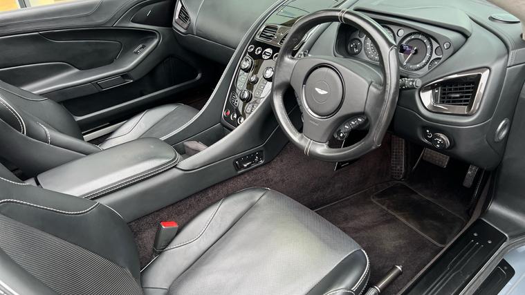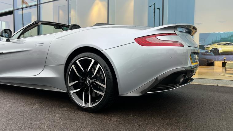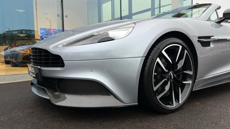 AML Special Sky Fall Silver paint on this stunning Aston Martin Vanquish Volante with just 15, 000miles on the clock and over 20K of Optional Extras. Rare Skyfall Silver Aston Martin Vanquish Volante with just over 15, 000miles covered and 3 owners from new. Fitted with a contrasting Obdisian Black Interior and over 20K of amazing Optional Extras including One 77 Style Steering Wheels, Gloss Carbon Fibre Side Strakes, Shadow Bronze Jewellery Pack, 10 Spoke Gloss Black Diamond Turned Alloy Wheels, Matte Black Exhaust Tailpipe, Gloss Carbon Fibre Mirror Caps, Black Vaned Front Grille, Ventilated Seating, Black Brake Calipers, Piano Black Interior Trim Pack and more. Full Aston Martin Service History, serviced just 200 miles ago and 12 Months Aston Martin Premium Warranty. A real head turner in a classic colour combination .