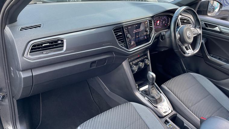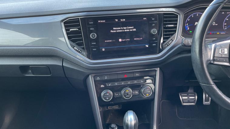 A stunning T-Roc R-Line with heated seats, navigation, parking sensors and 19 inch alloys. Meet the Volkswagen T-Roc 1.5 TSI EVO R-Line DSG, where style meets precision. Glide effortlessly with its 19-inch alloys and enjoy a warm embrace from heated front seats. Whether you're navigating unfamiliar roads or cruising on highways, its navigation and cruise control ensure you do it with ease. Front and rear parking sensors make maneuvering a breeze, while automatic headlights light your way without a second thought. Dual zone climate control, Bluetooth, and DAB radio cater to your comfort and entertainment. Embrace a drive that's as intelligent as it is exhilarating with the T-Roc. Welcome to freedom, redefined.