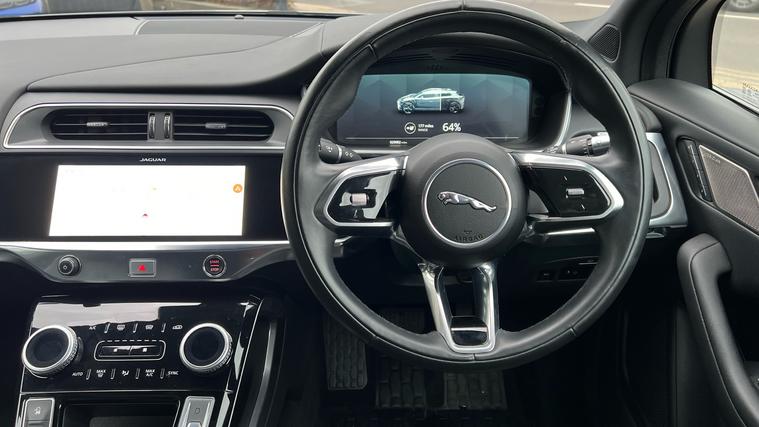 Great looking I Pace Black, offered in a desirable colour and comes complete with a host of regularly requested equipment. *9.9 Representative APR available. Finished in Eiger Grey Metallic with InteriorEbony Leather. Features include 10 inch Touch Pro, 20 inch Alloys Style 5068 Gloss Black finish, 40:20:40 folding rear seats with centre armrest, All Wheel Drive (AWD), Android Auto and Apple Carplay, Meridian(TM) Sound System, Blind Spot Assist, Clear Exit Detection, Two-zone climate control, Daylight running lamps, Double charging socket (AC/DC Type 2 Combo), Driver Condition Monitor, Driver and Passenger Elec Ffront Seat Memory, Grained leather sport seats, Black Exterior Pack, External Sound (ENG) Enhancemt, Twin front cupholders, 4-way lumbar adjust, Lockable glovebox, Headlight power wash, Premium LED headlights with signature DRL, Heated washer jets, Auto-dimming interior rear view mirror, Winter/Dynamic mode, Keyless Entry, Lane Keep Assist and Upcoming Traffic Alert, Touch-screen navigation system, Privacy glass, Digital Audio Broadcast (DAB) radio, Open Differential with Torque Vectoring by Braking, 40:20:40 split fold rear seat, Tailgate / boot lid spoiler, Rear Spoiler, Fixed Panoramic roof, Rear armrest with twin cupholdersRR Centre Armrest + Cupholder, Seat Cushion Power Height, Seat cushion power tilt adjust, Perforated Grained Leather seats, Heated front seats, Sport seats, Heated steering wheel, JaguarVoice system, Rear Camera. Call now for the full details and to check availability. *9.9 Representative APR available.
