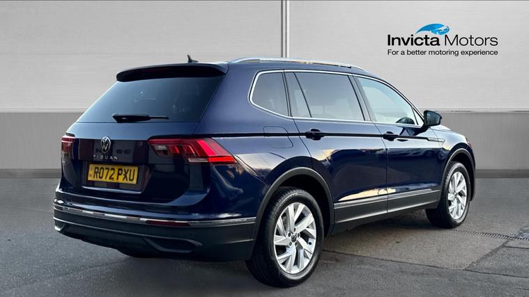 This is a well looked after VW Tiguan ALLSPACE. It has the 1.5TSi 150hp engine with the DSG Auto gearbox. It is just 1 Owner and has a comprehensive service history. Invicta offer for sale this lovely 2022 Volkswagen Tiguan 1.5 TSI 150hp ALLSPACE Life DSG Auto. This is a refined SUV with room for everyone. With seven spacious seats and privacy glass, it's as practical as it is stylish. Navigate effortlessly with built-in Sat Nav, while Apple CarPlay and Android Auto keep you connected. Experience unparalleled comfort with adaptive cruise control and the smooth precision of DSG automatic with paddleshifters. This 1 Owner vehicle boasts a full VW service history and a power tailgate for added convenience. The Volkswagen Tiguan ALLSPACE Life isn't just a car; it's your next adventure, wrapped up in a elegant good looking body. Call our friendly sales team today and ask us about Maintenance for Life!.